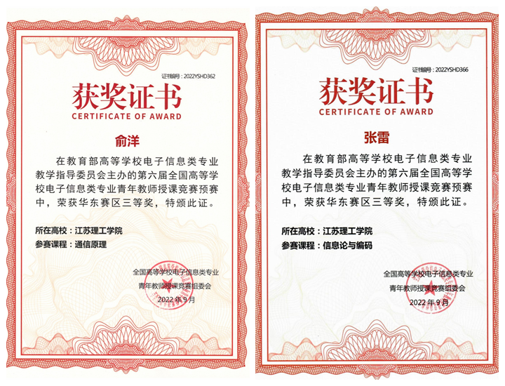 近日,第六届全国高等学校电子信息类专业青年教师授课竞赛全国决赛在重庆邮电大学举行。电气信息工程学院田建杰老师获得全国一等奖、潘玲佼老师获得全国二等奖,实现了我校在该赛事上的新突破,取得了同类院校中最佳成绩。