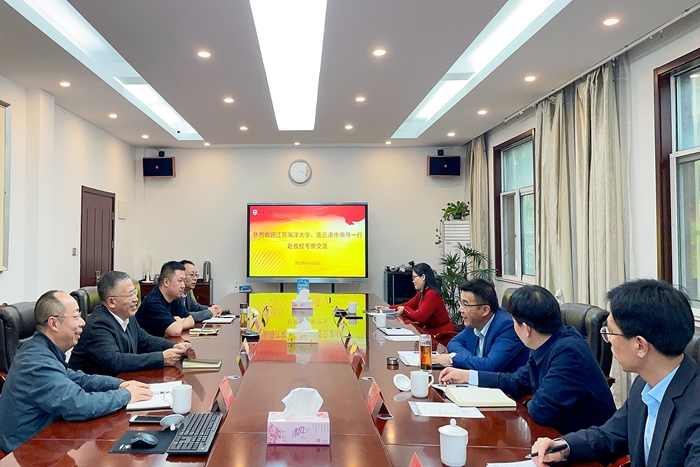 4月26日,江苏海洋大学党委常委、副校长郑利军带队来校就新校区建设开展调研活动,校党委书记崔景贵,副校长谢忠秋,新校区建设指挥部办公室相关人员在正德楼第二会议室接待来访客人,并进行座谈交流。