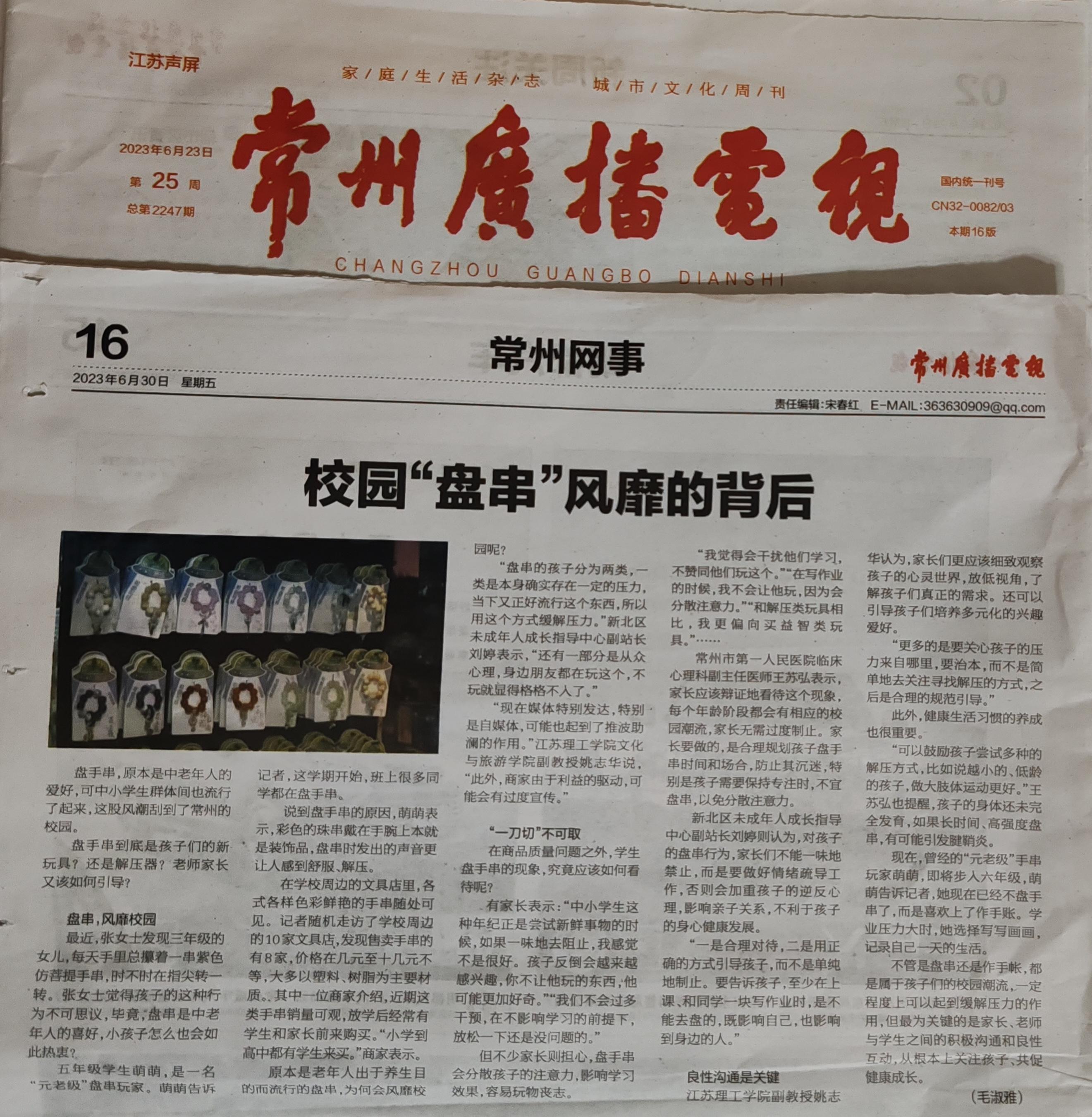 常州广播电视报:校园“盘串”风靡的背后