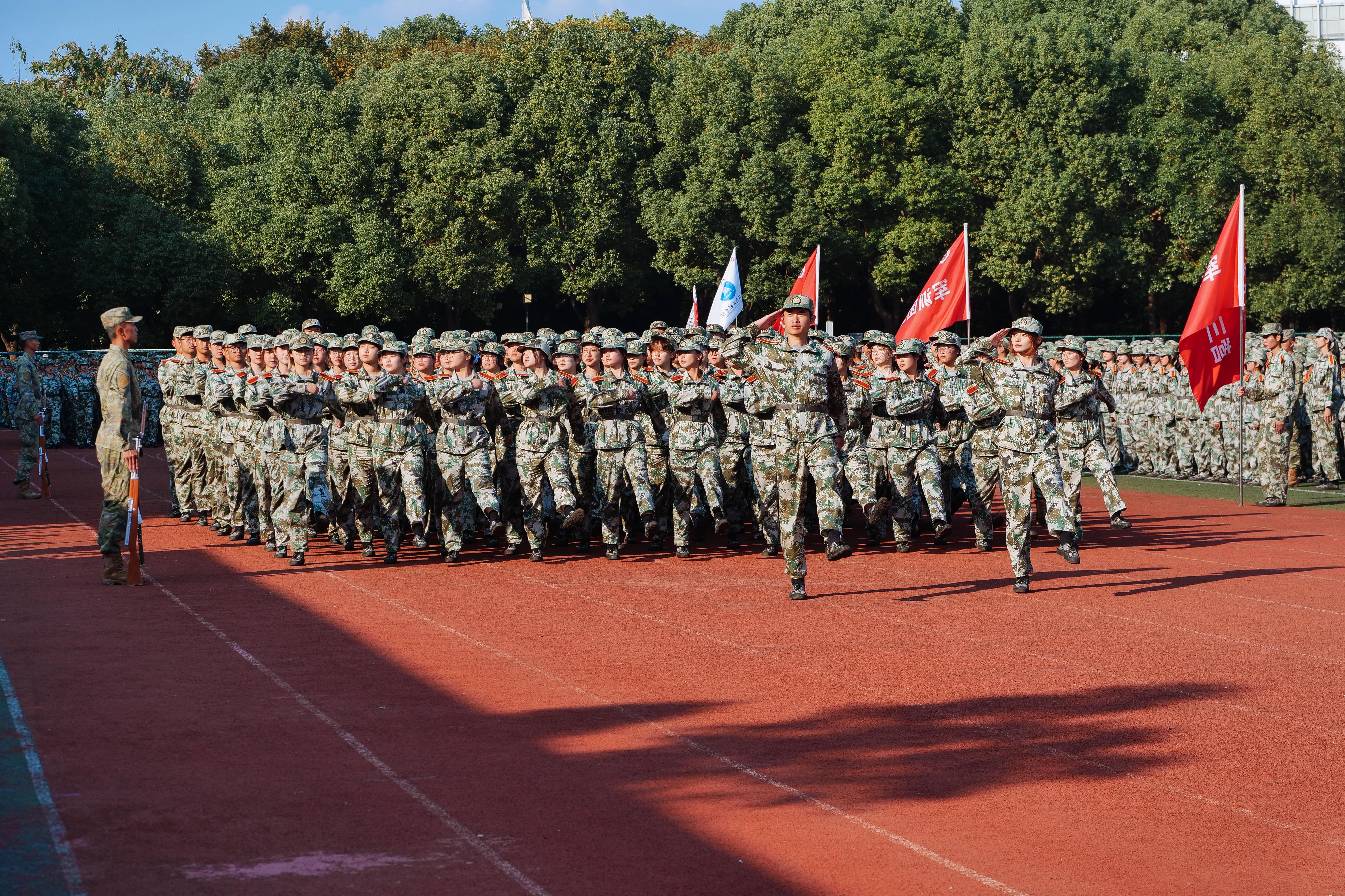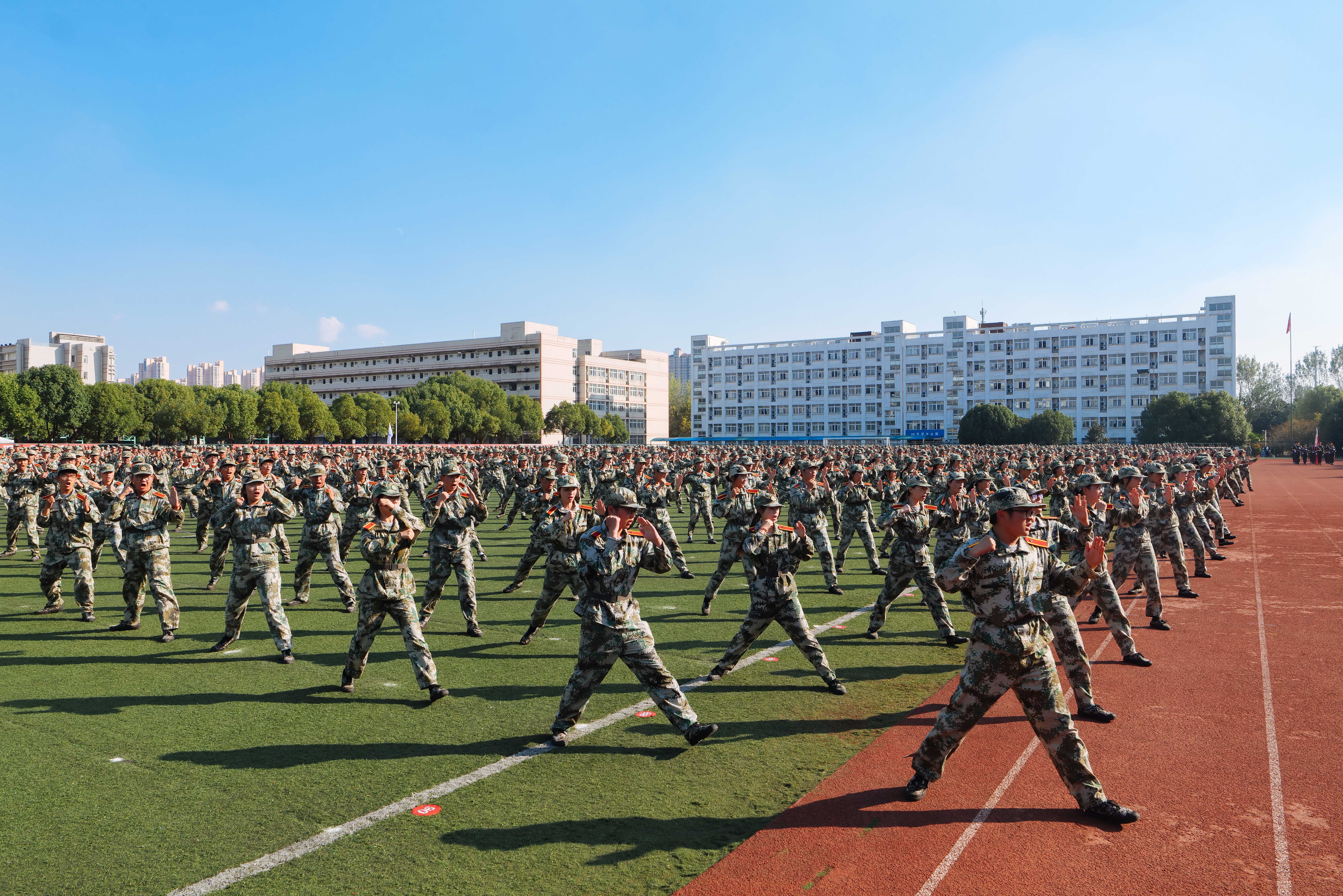 大会在庄严的国歌声中拉开序幕。军训方队首先进行军事战术演习、擒敌拳、格斗操等汇报表演,动作威武、气势如虹,赢得现场热烈掌声,展现了江理工学子的昂扬斗志和青春活力。在《中国人民解放军进行曲》伴奏下,各方队分列式入场,依次通过大会主席台。同学们动作整齐划一,队列井然有序,展现了良好的综合素质和积极向上的精神风貌,全方位展现了军训第一课对大学生品格塑造和身体锤炼的重要作用。