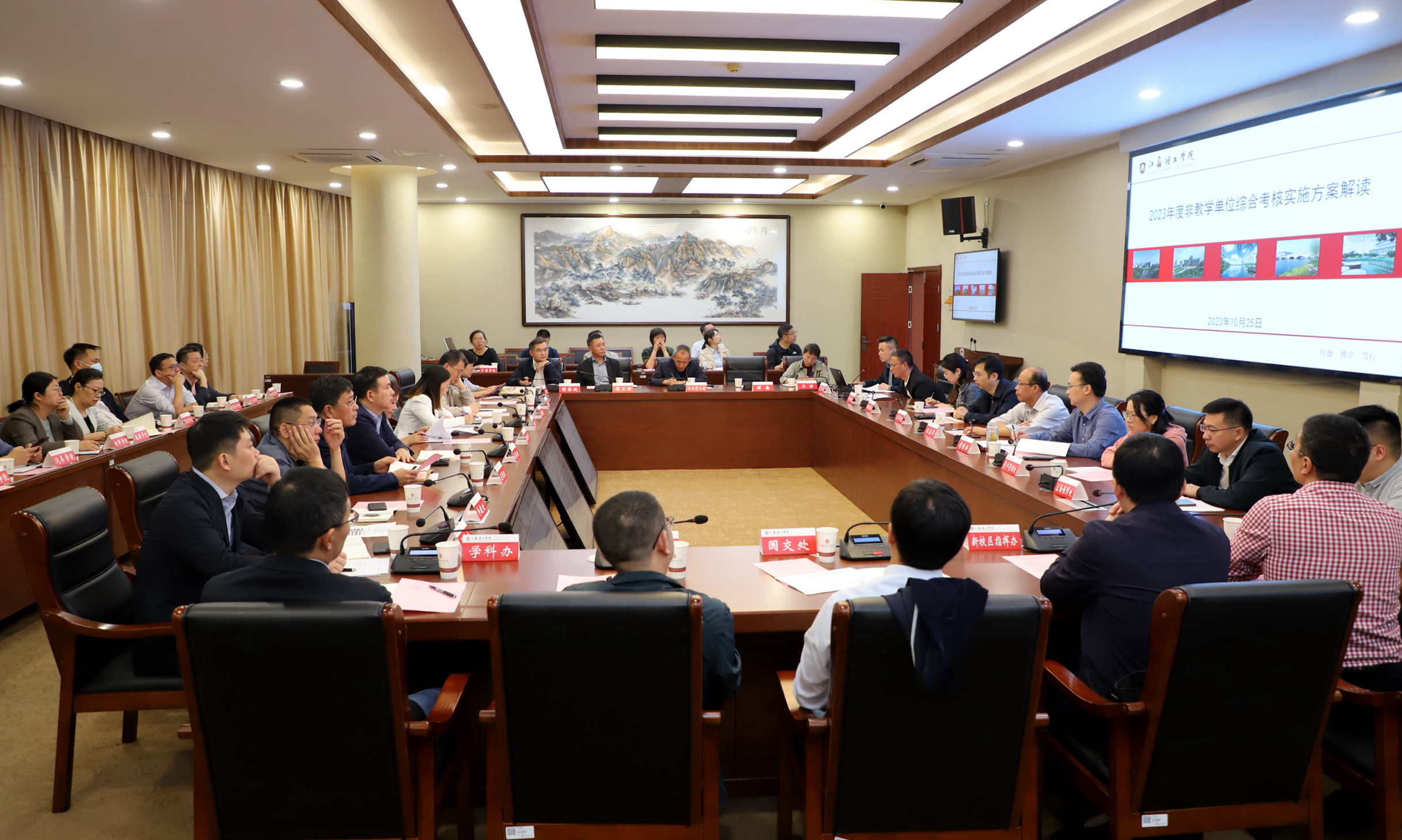 综合考核办、教务处、纪委办、组织部相关负责同志分别对学校综合考核“1+4”政策文件进行业务培训辅导,省考核指标责任部门负责同志依次汇报所负责指标和特色亮点项目的进展情况及下一步思路举措。