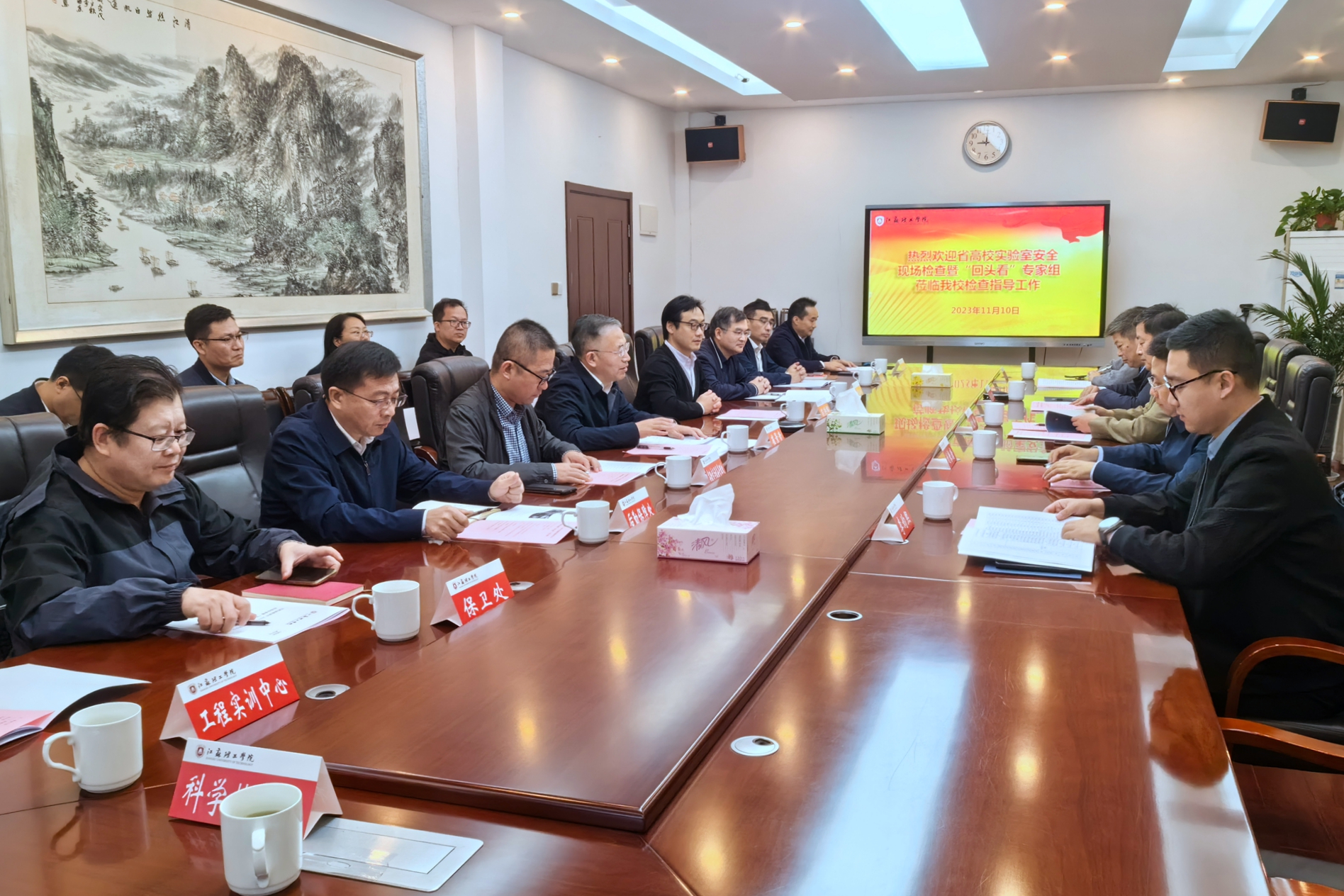学校保卫处、教务处、科技处、财务处、后勤保障处、工程实训中心等职能部门负责人参加会议,化学化工学院、资源与环境工程学院、材料工程学院和电气信息工程学院负责人陪同现场检查。(图/文 实验室与设备管理处 宋维华、资产处 王华;审核/吕凤亚;编辑/黄妤)