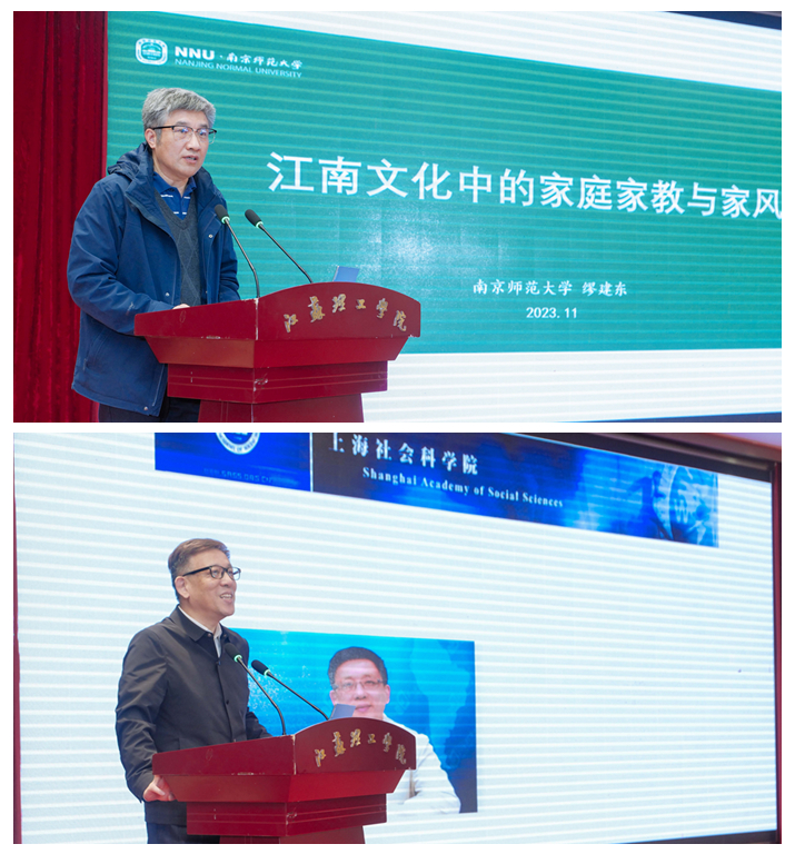 主旨报告环节,缪建东带来题为“江南文化中的家庭家教与家风”的报告,以我们有什么样的家教文化、我们需要怎样的家教文化以及怎样建设现代家教文化为思考的出发点,从江南文化概述、江南文化中的家教家风智慧、江南智慧对于家教家风建设的启示以及江南优良家教家风的教育对策四个方面具体展开了阐述。杨雄带来题为“幸福的家庭需要一个稳定的三角:亲职教育、子职教育与夫妻教育”的报告,主要从社会学的视角阐释了家庭教育的四大要义:即正常家庭结构是一个“稳定的三角”;亲职教育:通过“上岗”培训,教父母成为称职家长;把好紧与松的度,帮助孩子“扣好第一粒扣子”;夫妻教育”:配偶“各司其职”,促孩子发展出自主成熟人格。同时在此基础上归纳出家庭教育的关键:学会做人、学会做事、身心健康。