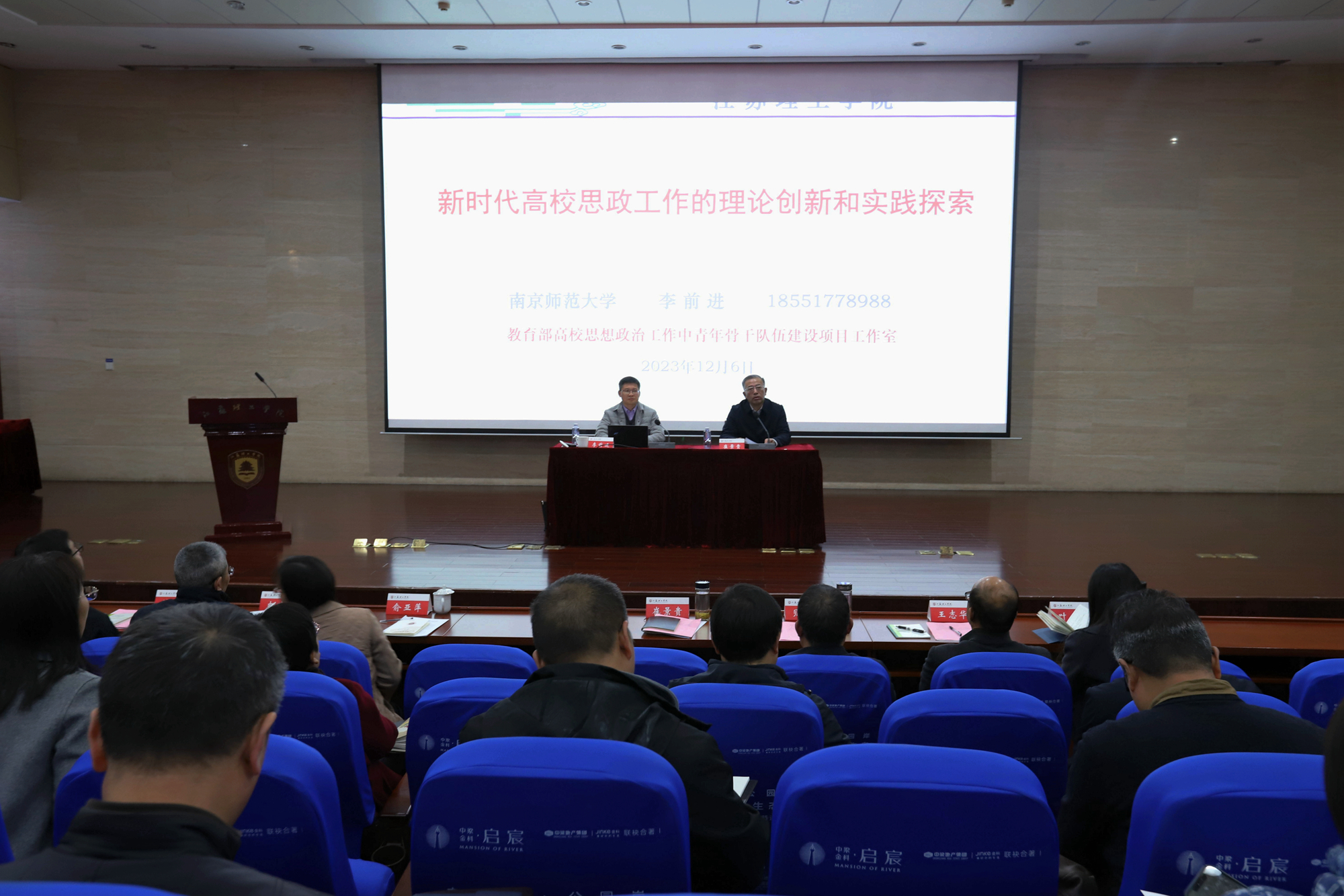 第二阶段专家报告会由崔景贵主持。特邀全国高校“思政杰青”获得者、教育部“思创中心”特聘专家、江苏省高校思政课教指委委员、南京师范大学马克思主义学院李前进教授来校,以《新时代高校思想政治工作的理论创新与实践探索》为题作专题讲座。报告视野宽广、内涵丰富、分析透彻、深刻精辟,系统解读了新时代高校思政工作的理论创新、实践探索和实践成效。崔景贵希望全体思政工作者融会贯通地悟、联系实际地思、扎扎实实地做,特别是要加强理论学习和实践历练,掌握新时代思想政治工作的真本领,练就新时代铸魂育人的真功夫!