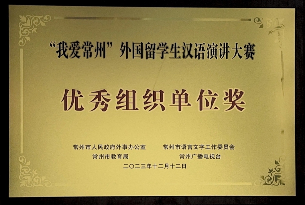12月12日,由常州市人民政府外事办公室、常州市教育局、常州市语言文字工作委员会、常州广播电视台联合主办的2023年“我爱常州”外国留学生汉语演讲大赛总决赛在河海大学常州校区举行。我校获优秀组织单位奖,国际教育学院马来西亚籍留学生林旆如、越南籍留学生黎氏水均获二等奖,国际教育学院教师郜思洁获优秀指导教师奖。