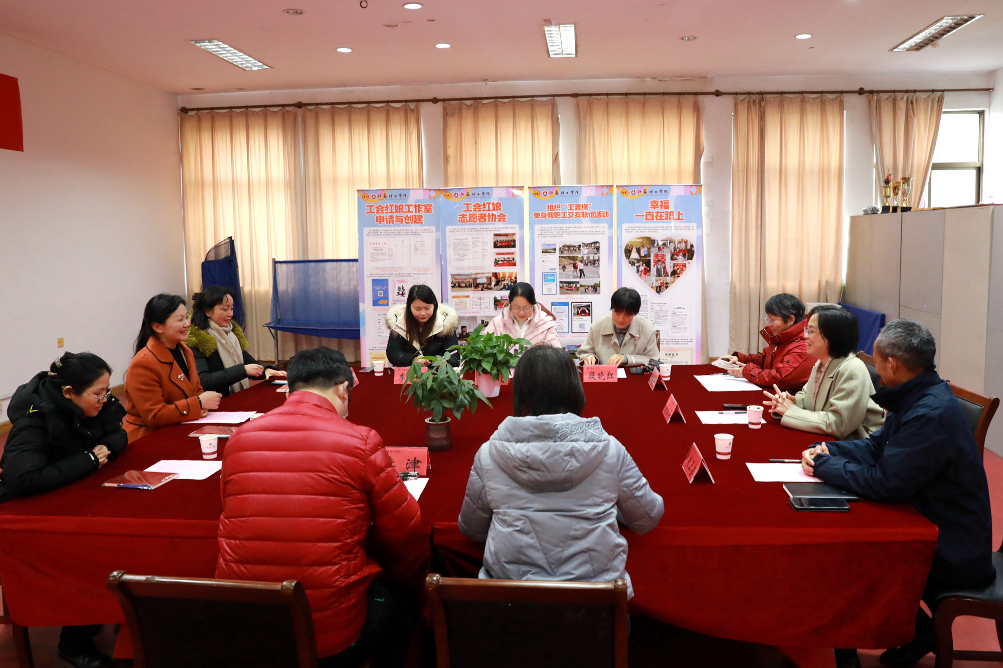 会上,校工会就红娘工作室创建、搭建青年教职工交友平台等情况作了专题汇报。俞亚萍陪同王丹丹一行浏览校工会红娘工作室创建情况展板、查看了相关工作台账。(文/校工会 李津;审核/朱正奎;图/编辑 黄妤)