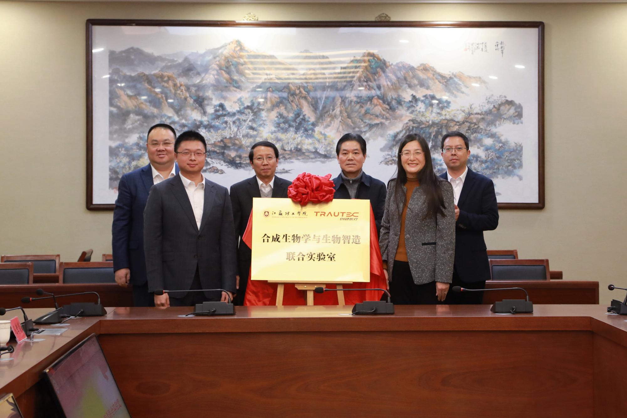 12月25日,我校与江苏创健医疗科技股份有限公司共建合成生物学与生物智造联合实验室揭牌仪式在图书馆4楼会议室举行。常州市科技局副局长张朝晖,我校党委副书记、校长戴国洪,党委常委、副校长王俊,科技处处长王田虎,电气信息工程学院院长俞洋,生物信息与医药工程研究所所长常珊,江苏创健医疗科技股份有限公司首席执行官钱松,江苏创健医疗科技股份有限公司首席技术官李海航,江苏创健医疗科技股份有限公司产品研发副总凡孝菊,江苏创健医疗科技股份有限公司高级研发主管李佳佳,清华大学汪小我教授,南京工业大学姜岷教授以及生物信息与医药工程研究所教师及20余名同学参加了仪式。仪式由副校长叶霞主持。