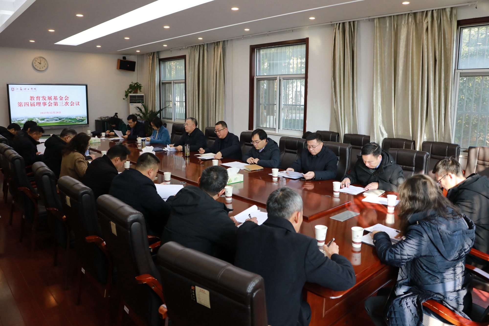12月28日,我校在正德楼第二会议室召开学校教育发展基金会第四届理事会第三、第四次会议,顺利完成届中调整。校党委书记、基金会理事长崔景贵,党委副书记贝绍轶,党委常委、副校长俞亚萍,全体理事、监事参加会议。会议由郭耿玉主持。