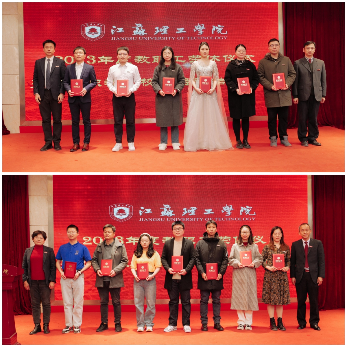 机械工程学院谭超代表新教师发言。他感谢学校对新入职教师成长的高度关注,表示自己要坚持学习提升,站稳讲台;追寻热爱,潜心科研;团结协作、行稳致远。自己将以教书育人和科研创新为己任,共同助力江苏理工学院的高质量发展。