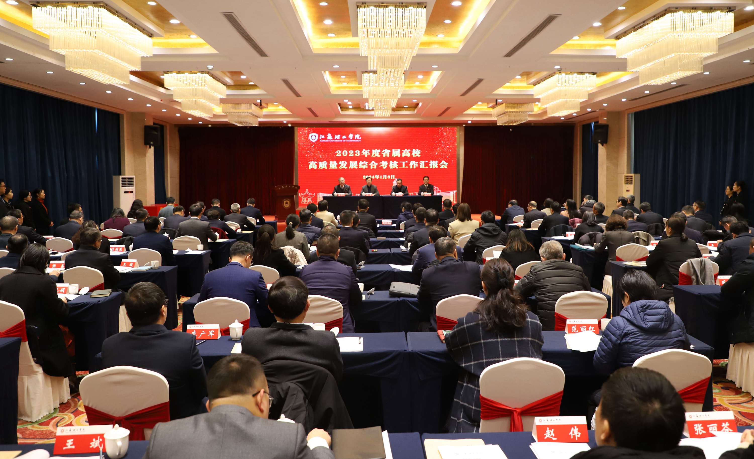 1月8日上午,学校召开2023年度省综合考核工作汇报会。按照省委考核委统一安排,省属高校综合考核第二考核组到会指导,学校领导班子成员,党委委员、纪委委员,中层正职干部,区级以上党代表、人大代表、政协委员,民主党派负责人,具有高级职称的专业技术人员代表和基层代表等参加会议。会议由校党委书记崔景贵主持。考核组组长、南京邮电大学原党委书记刘陈讲话。