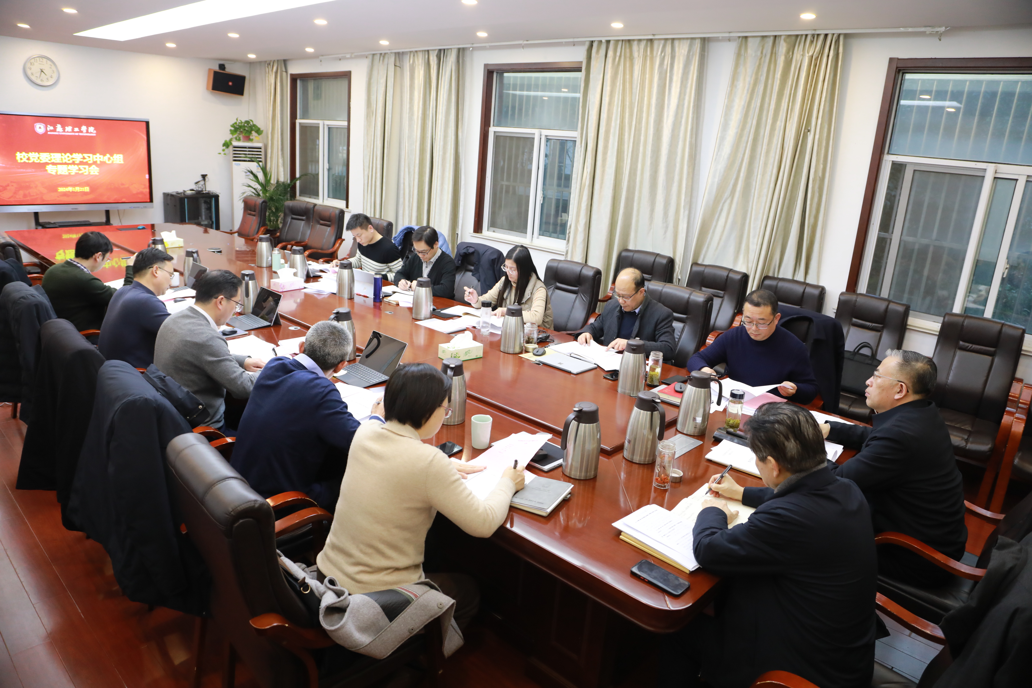 1月21日下午,我校在正德楼第二会议室召开校党委理论学习中心组专题学习会,传达学习习近平总书记在二十届中央纪委三次全会上的重要讲话和全会精神。校党委理论学习中心组成员参加学习会,校党委书记崔景贵主持会议。