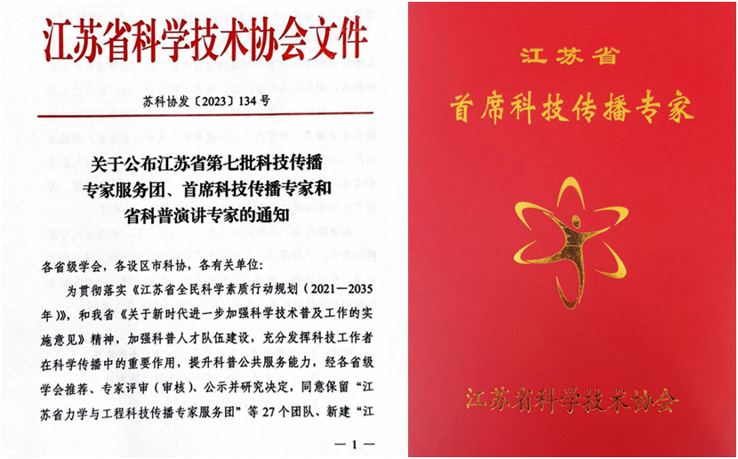 近日,江苏省科协公布《关于公布江苏省第七批科技传播专家服务团、首席科技传播专家和省科普演讲专家的通知》。其中,经相关省级学会推荐、专家评审(审核)、公示并研究决定,聘任我校黄海军老师为“江苏省第七批首席科技传播专家”,本次全省共新聘任首席科技传播专家99名。