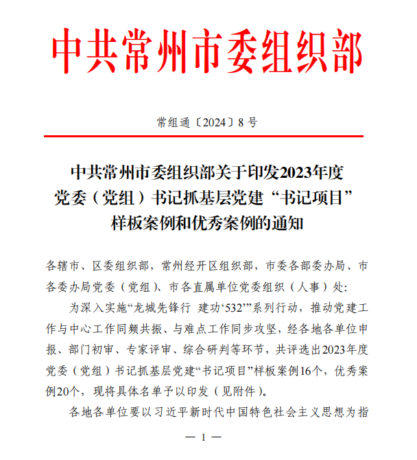 日前,从中共常州市委组织部传来喜讯,我校《打造高质量党建服务地方文旅事业发展“智库平台”》项目,成功入选2023年度党委(党组)书记抓基层党建“书记项目”样板案例。我校是在常高校中唯一入选样板案例的单位。
