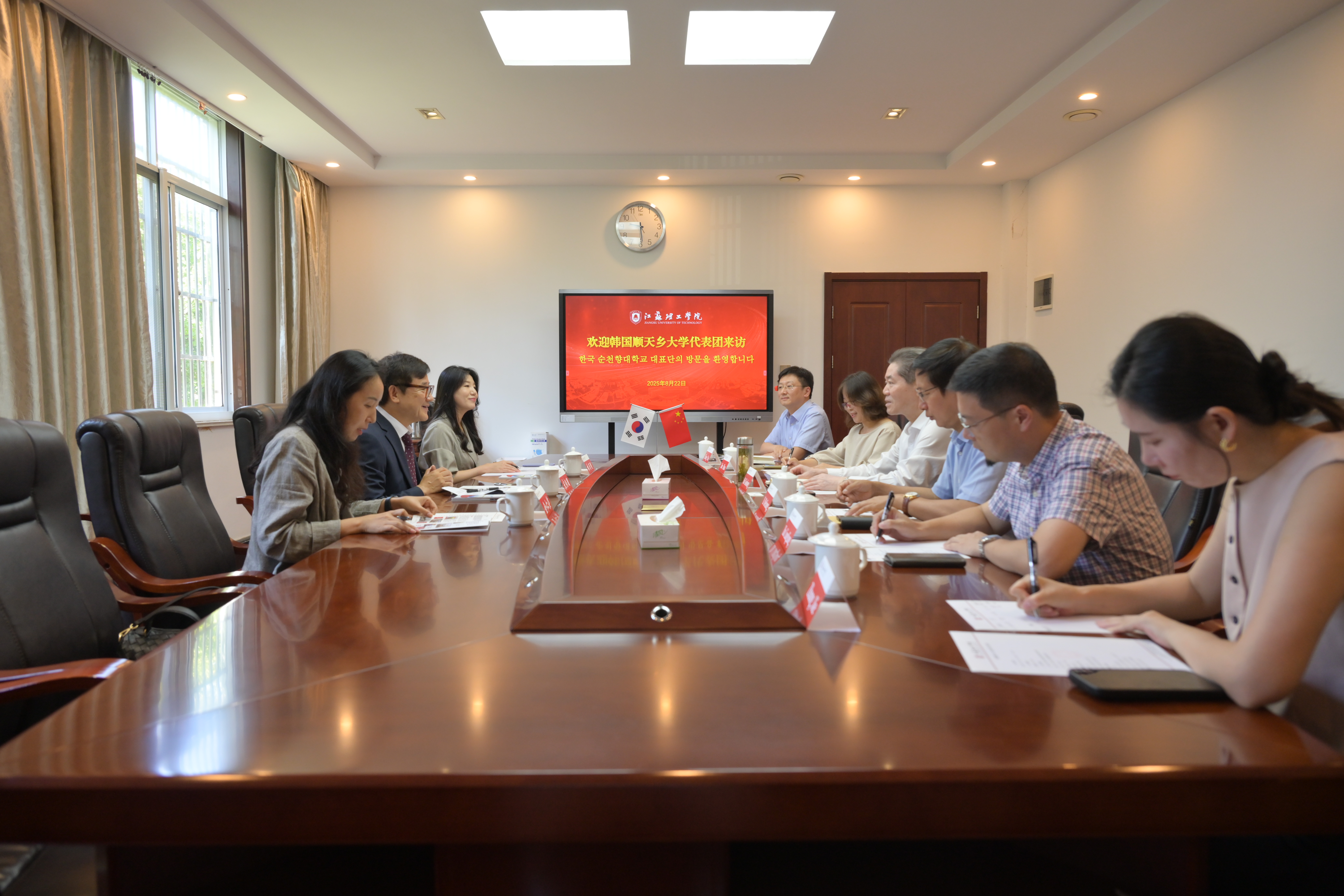8月22日,韩国顺天乡大学校长宋炳國一行来访。校党委副书记、校长戴国洪,国际合作与交流处、教育学院、艺术设计学院相关负责人参加座谈交流。