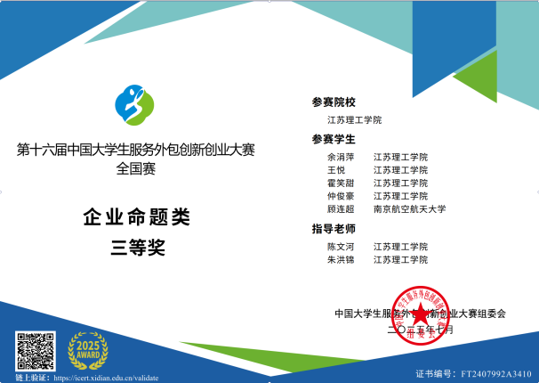 据悉,该项赛事是由教育部、商务部和无锡市人民政府共同主办,是服务外包产业领域最具影响力的国家级赛事。赛事吸引了全国904所院校、9502支队伍踊跃参赛。(图/文 计算机工程学院 陈文河;审核/景征骏;编辑/张姚)