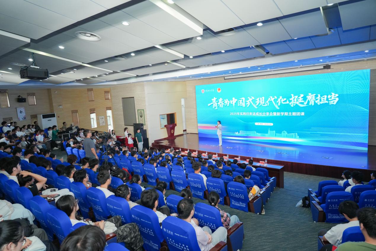 9月25日下午,我校在图书馆北报告厅举行“实践归来话成长”分享会。党委常委、副校长俞亚萍,团市委副书记黄泽欣,市委网信办副主任陆启伟,党委宣传部、党委学生工作部、校团委、马克思主义学院相关负责人,武进团区委、牛塘镇有关负责人,部分青联委员、社会组织和企业家代表,以及我校二级学院党委副书记代表、校院两级团干部、2025级新生代表参加活动。