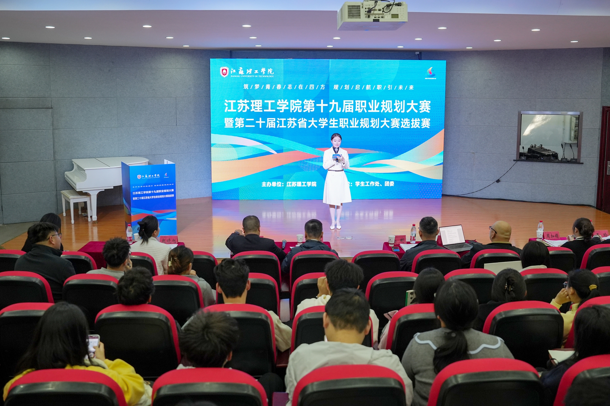 11月10日下午,我校第十九届职业规划大赛暨第二十届江苏省大学生职业规划大赛校内选拔赛在47号楼1阶师范生音乐技能演播厅举行。本次大赛以“筑梦青春志在四方,规划启航职引未来”为主题,自暑期启动以来,吸引近万名在校学生参与,覆盖全校各学院各专业。