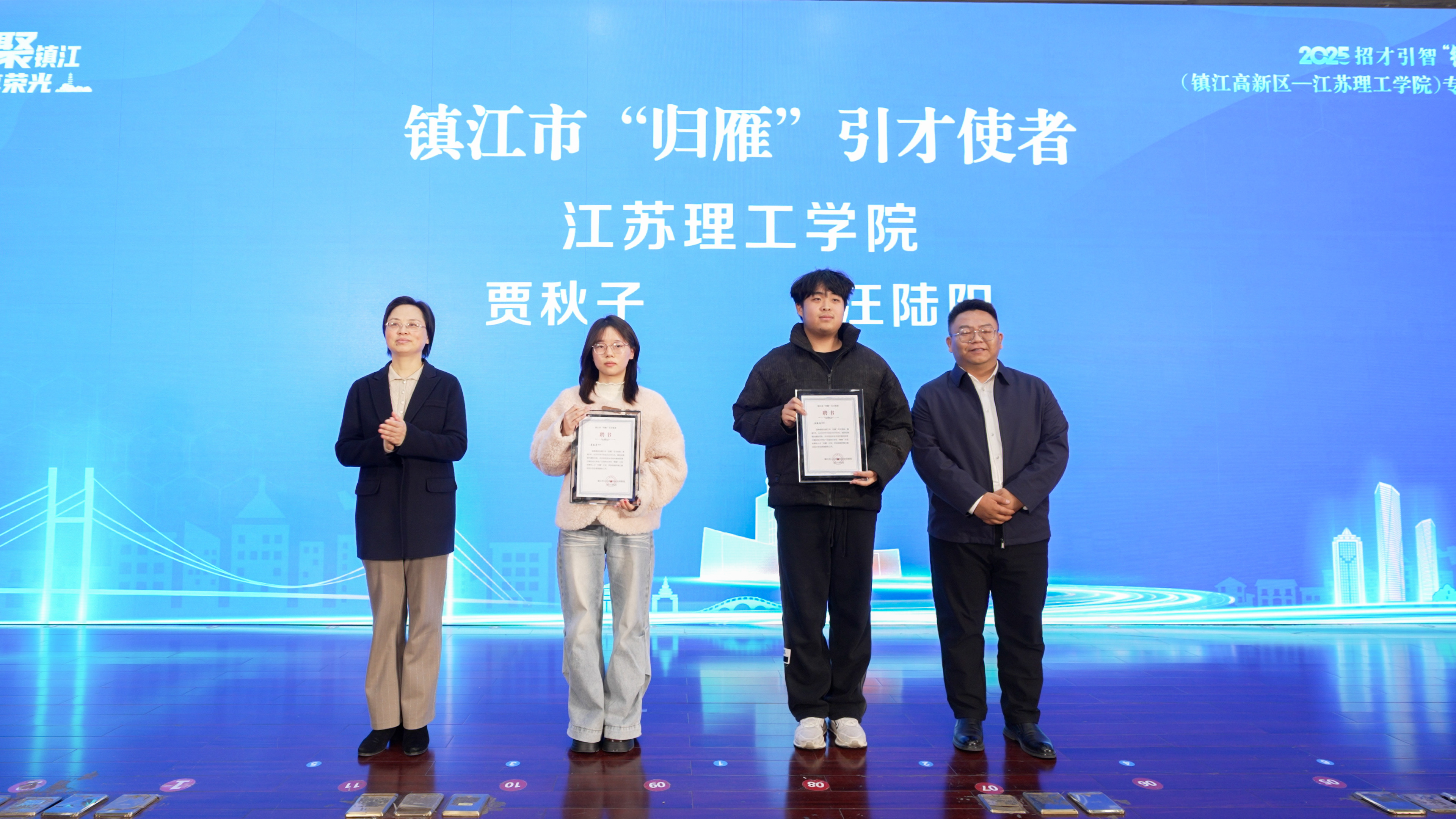 活动现场,镇江市人社局、镇江高新区管委会分别解读了市级、区级人才政策体系,为青年人才送上政策“大礼包”;举行“江理工镇江微校区”和“江理工技术转移中心镇江分中心”揭牌仪式,6家镇江重点企业被授予“江苏理工学院大学生就业实践基地”,2名我校镇江籍学子被聘为“归雁”引才使者。
