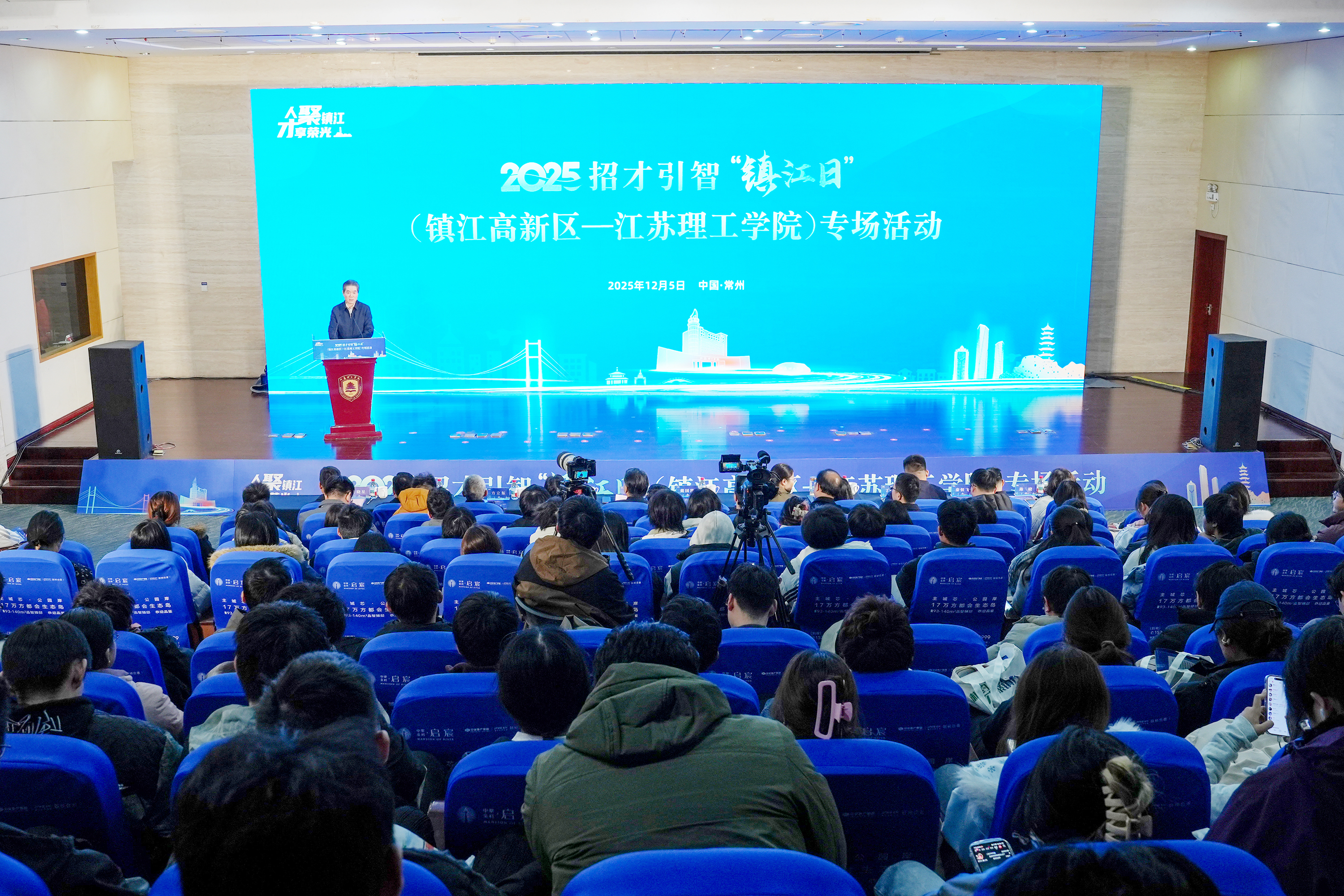 12月5日,2025招才引智“镇江日”江苏理工学院专场活动在我校举行。镇江高新区党工委书记顾小俊我校党委副书记、校长戴国洪出席活动。镇江市委组织部、市人力资源和社会保障局、市科学技术局、共青团镇江市委及高新区相关职能部门负责人,校领导班子成员、相关职能部门负责人及2026届毕业生、镇江籍学生代表参加活动。
