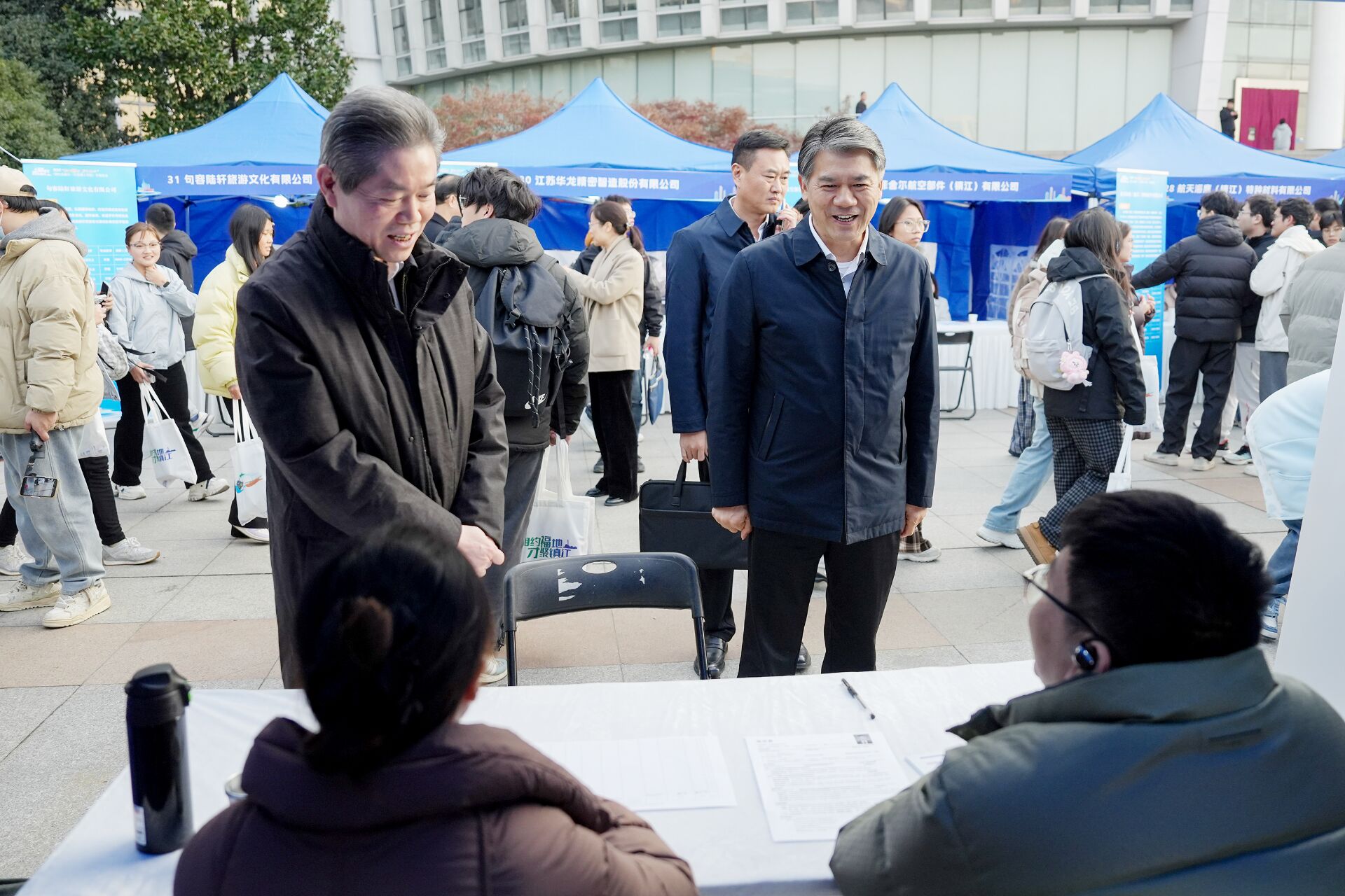 校园双选会在图书馆广场同步举行,30家镇江重点企业带来1500余个岗位,精准对接2026届毕业生,为毕业生提供了广阔的职业发展平台。同期,校地“双高协同”产学研对接会、“归雁”大学生联谊活动分别开展,校企签署多项技术合作与成果转化协议,百余名江苏籍学子共叙乡情、共话发展,进一步凝聚了“返镇就业、筑梦家乡”的青春共识。