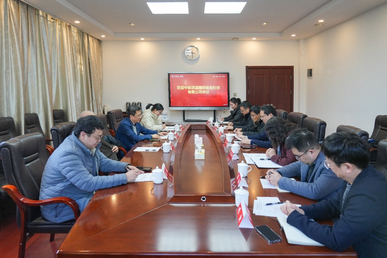 近日,中国教育国际交流协会原秘书长邵巍、中教源盛国际教育科技有限公司总经理印凯一行来访,党委常委、副校长王俊,学生工作处、教务处、国际合作与交流处、国际教育学院等相关负责人参加了座谈交流。