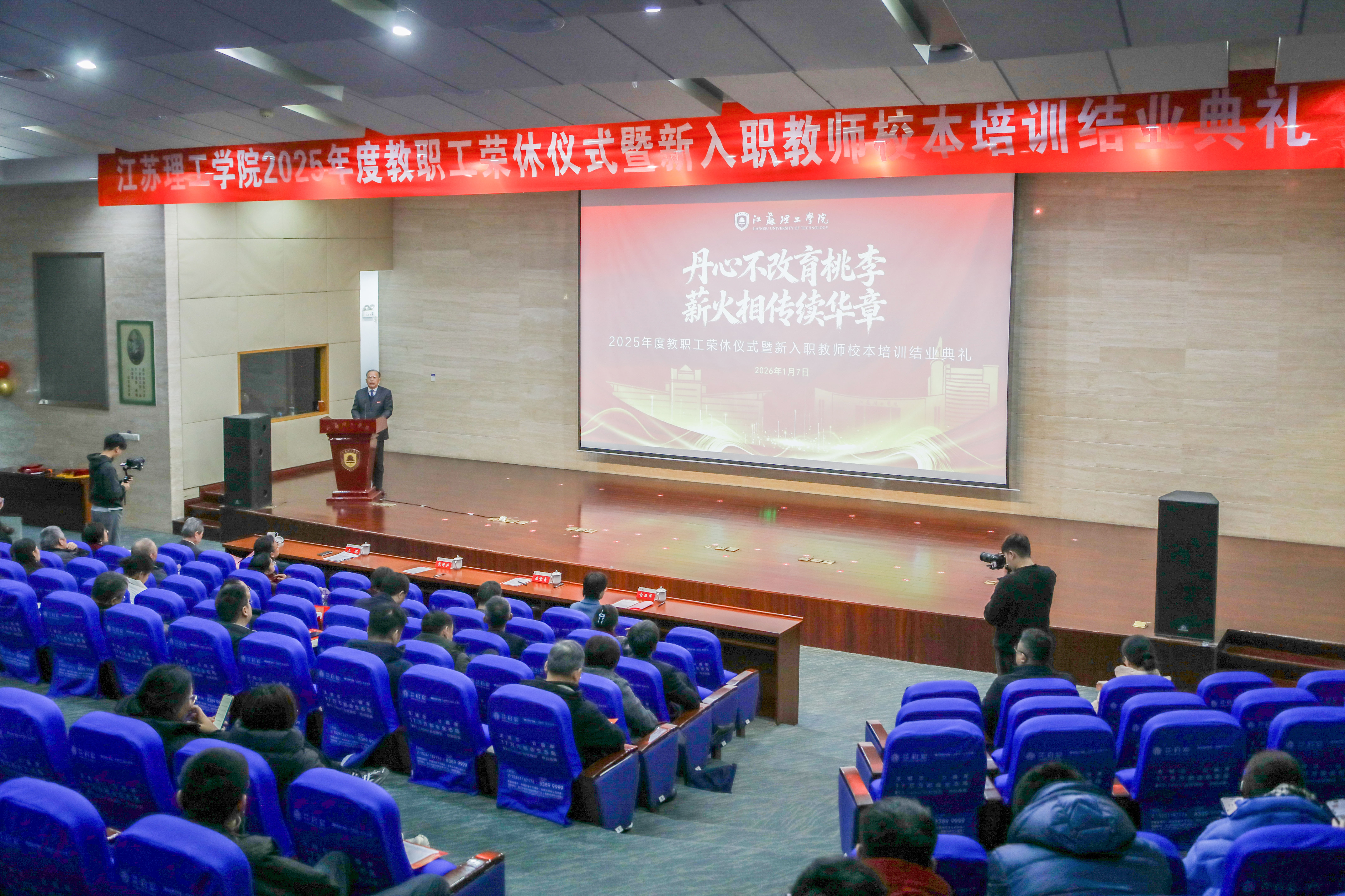 1月7日下午,我校在图书馆北报告厅隆重举行以“丹心不改育桃李 薪火相传续华章”为主题的2025年度教职工荣休仪式暨校本培训结业典礼。校党委书记崔景贵,校党委副书记、校长戴国洪,党委常委、副校长俞亚萍,党委常委、宣传部部长王斌以及党委办公室、党委组织部、党委教师工作部、教师发展中心、校工会、离退休工作处等职能部门负责人,各二级学院党组织书记,以及荣休教职工代表、新入职教职工代表、普通教职工代表齐聚一堂、共襄盛典。仪式由戴国洪主持。