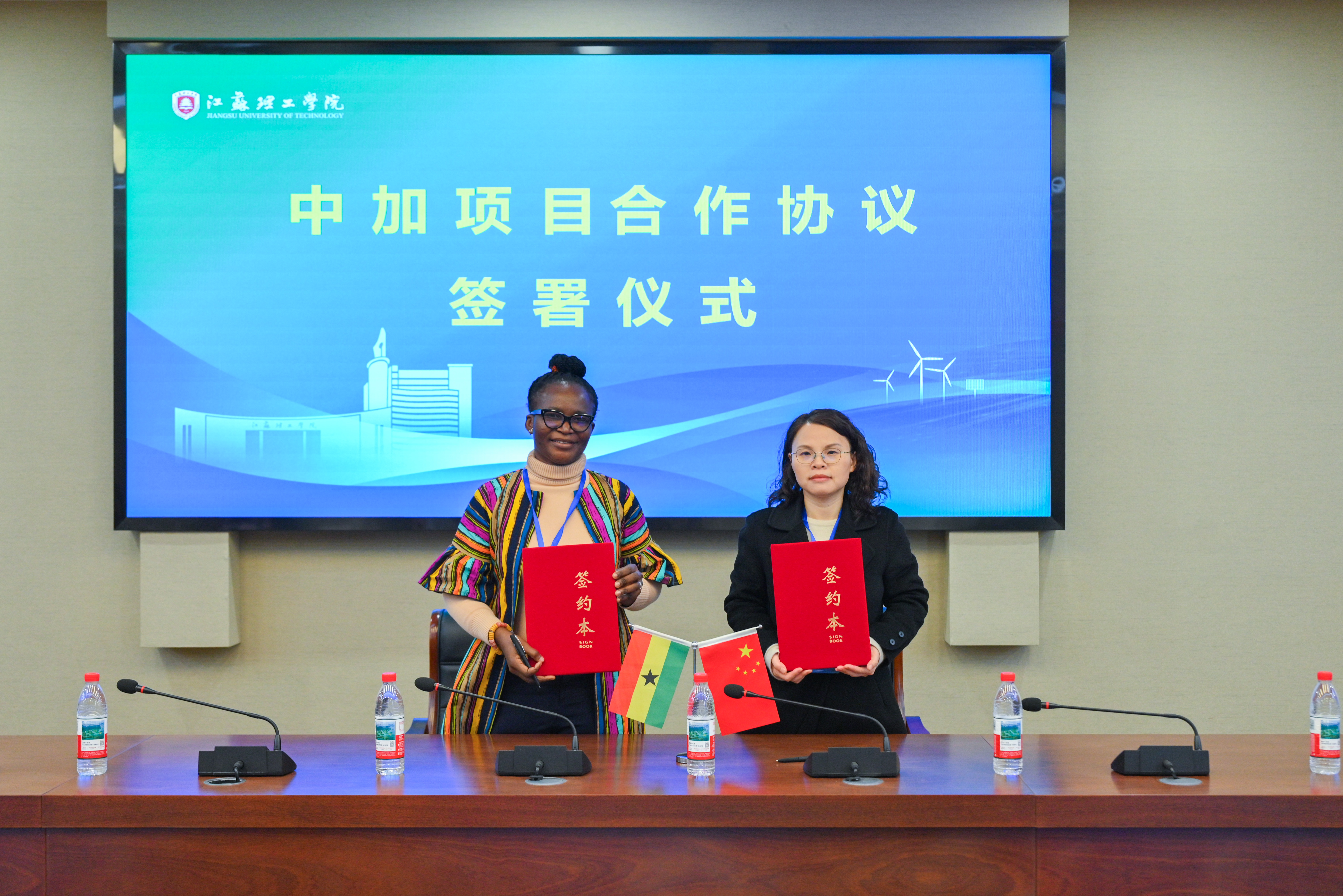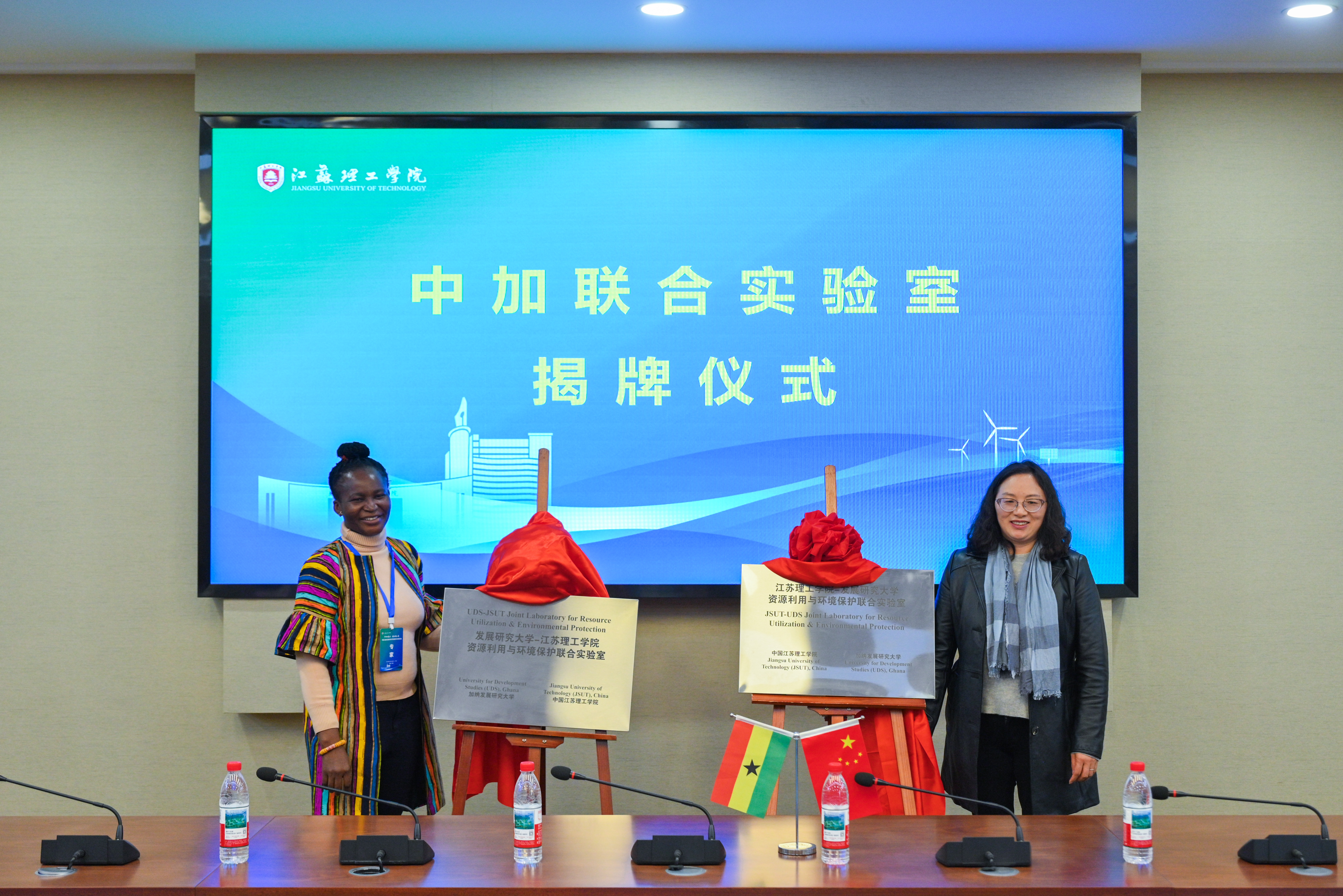 会上,我校与加纳发展研究大学共同签署了项目合作协议,并举行了“发展研究大学-江苏理工学院资源利用与环境保护联合实验室”揭牌仪式。